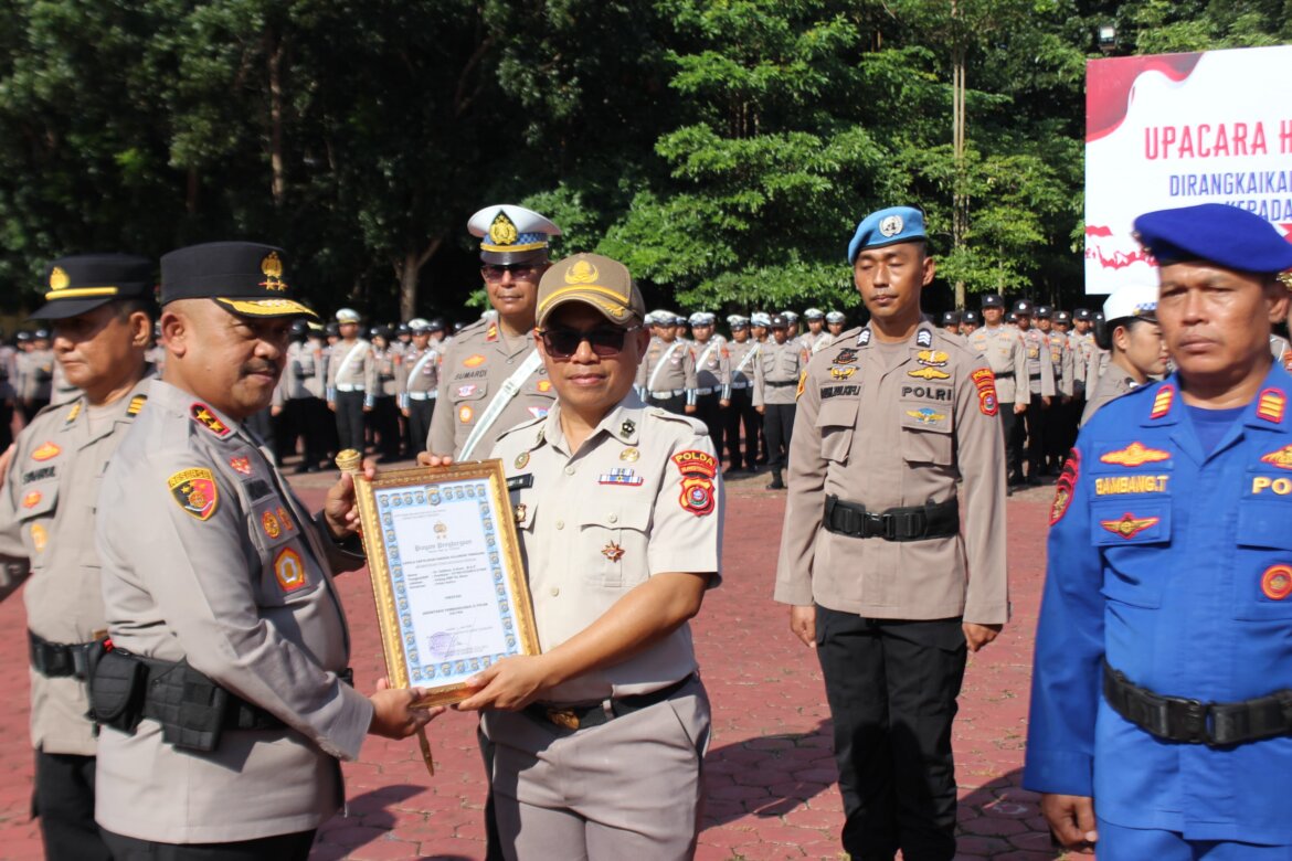 “Jadikan penghargaan ini sebagai motivasi. Tetaplah rendah hati dan jangan pernah merasa cepat puas,” ujar Kapolda di hadapan peserta upacara.