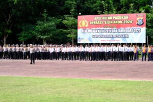 Kendari – Dalam rangka menyambut perayaan Natal 2024 dan Tahun Baru 2025, Polda Sulawesi Tenggara melaksanakan Apel Gelar Pasukan Operasi Lilin Anoa di Lapangan Apel Polda Sultra pada Jumat, 20 Desember 2024. Apel ini dipimpin langsung oleh Kapolda Sultra, Irjen Pol Dwi Irianto, S.I.K., M.Si., dan diikuti oleh pejabat utama Polda Sultra serta personel gabungan dari berbagai instansi.